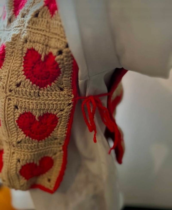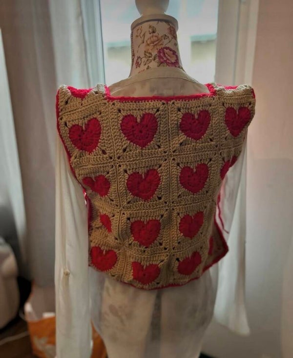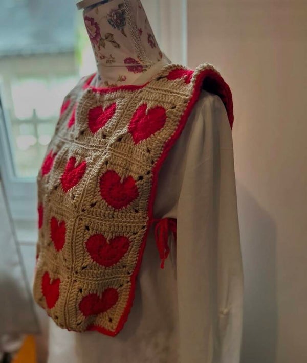 Top amoureux réalisé 100% à la main avec de l'acrylique et une doublure en tissu.