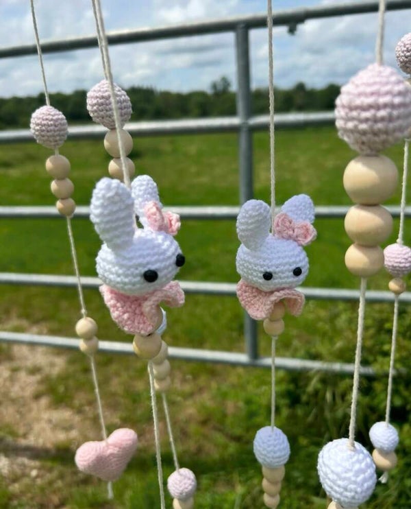 Les mobiles de lit sont fait 100% à la main avec un cercle en osier, du coton, des perles en bois et du macramé.
