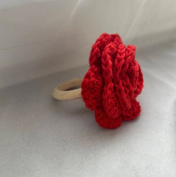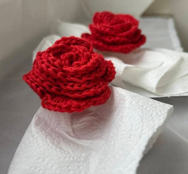 Les ronds de serviette sont fait 100% à la main avec un anneau de bois et du coton.
