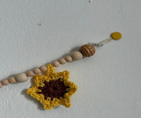 La guirlande de tournesol est faite 100% à la main avec du coton, de perles de bois et du fil de macramé.