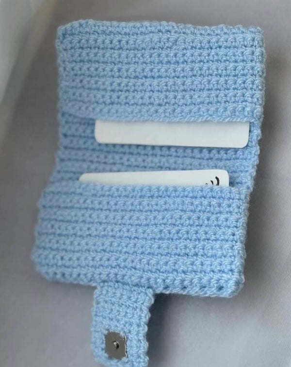 Le porte feuille fait 100% main avec de l'acrylique est super pratique, il vous permet de rassembler vos cartes et billets au même endroit et le petit plus, il loge parfaitement dans tout les sacs que je peut vous proposer.