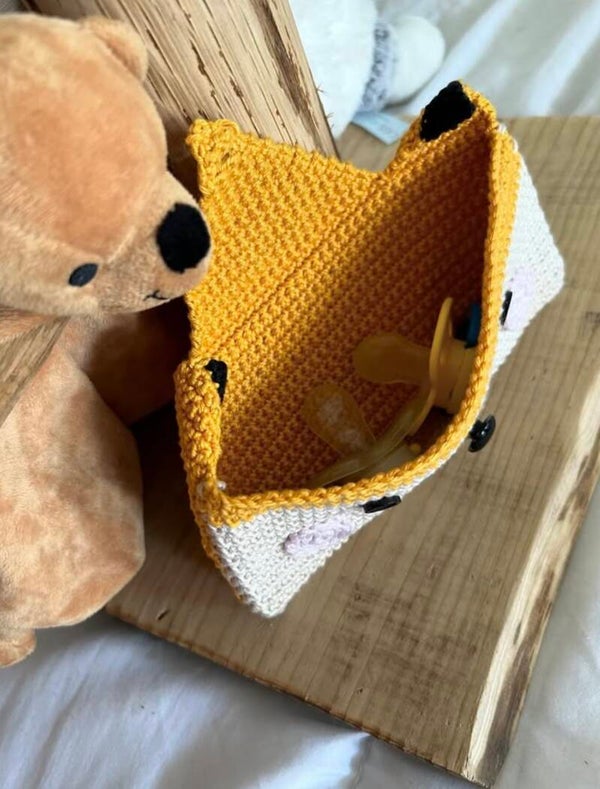 La pochette animaux faite 100% à la main avec du coton et des boutons en plastique est parfaite pour vos petits bouts, rangement pour les tétines, les lunettes de soleil et bien d'autres .